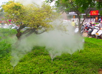噴霧系統(tǒng)運(yùn)用的案例含噴霧消毒、人造霧景觀(guān)、噴霧除臭、除塵等。