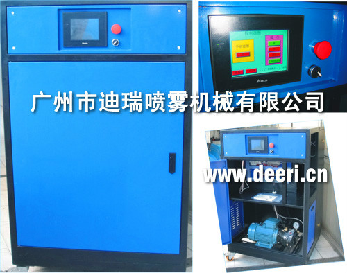 PLC控制造霧機的工作原理是利用高壓柱塞泵將水壓提高到7Mpa,然后將加壓后的水經(jīng)耐高壓輸送管線由專業(yè)霧化噴嘴將其霧化,產(chǎn)生3—15μm的微霧顆粒,使其能夠迅速從空氣中吸收熱量完成汽化并擴散,從而完成空氣加濕、降溫的目的.加濕量為150~900kg/h。
