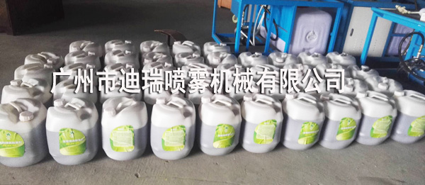 植物除臭劑經過自動配比器按一定比例稀釋后,經噴霧控制設備和高壓管路系統(tǒng)輸送至布設在臭氣控制區(qū)域現(xiàn)場的噴嘴,并被霧化成10~40微米粒徑的細霧均勻分散至控制區(qū)域現(xiàn)場空間,植物除臭劑的細霧和空氣中的臭氣分子接觸后,通過吸收、親核加成、催化氧化、化合等一系列反應,達到除臭氣的目的。